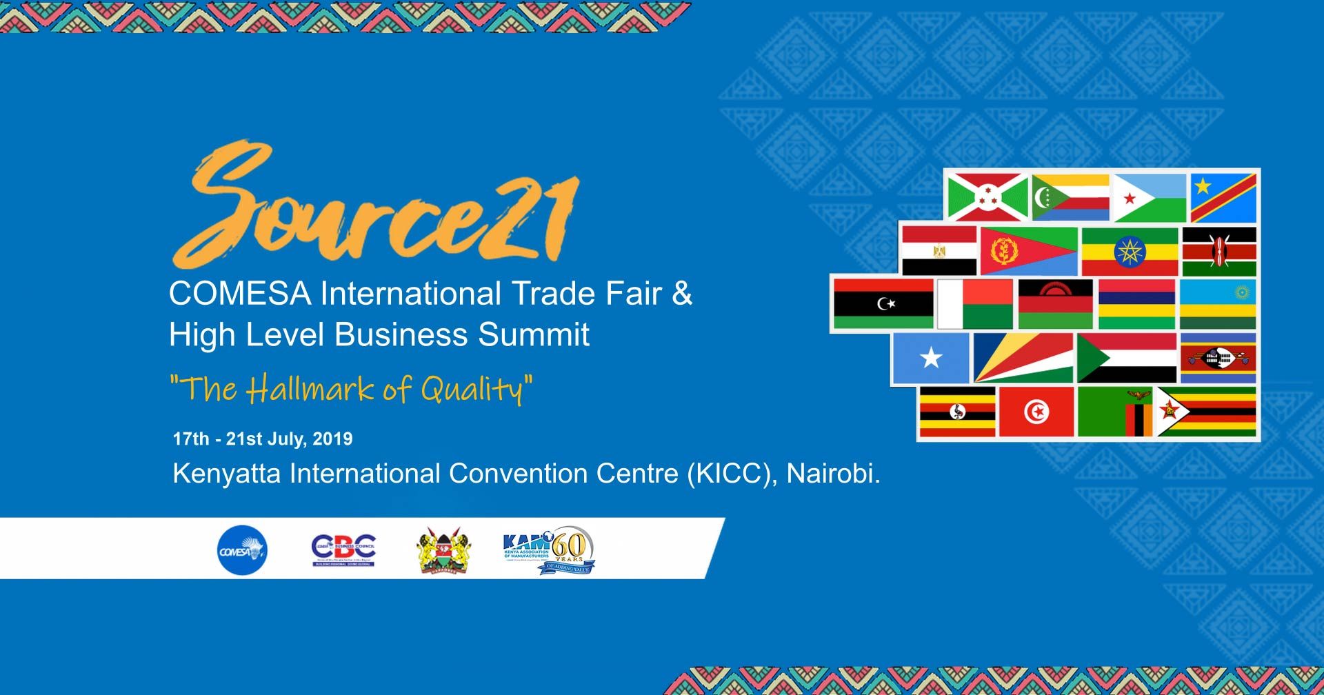 Le Sommet des entreprises de haut niveau Source 21 du COMESA sera organisé du 17 au 18 juillet 2019 à Nairobi, au Kenya, parallèlement au salon international du COMESA, sur le thème «La marque de la qualité».